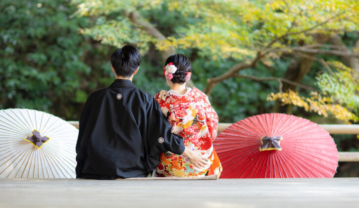 挙式はしないけれど、お二人の幸せな時間をお写真で残す。洋装で結婚式を挙げたので和装でも写真を残したい方。新郎は紋付羽織袴を、新婦は白無垢と色打掛、引き振袖からお選びいただけます。特別な一日をおふたりらしいスタイルで表現しましょう。